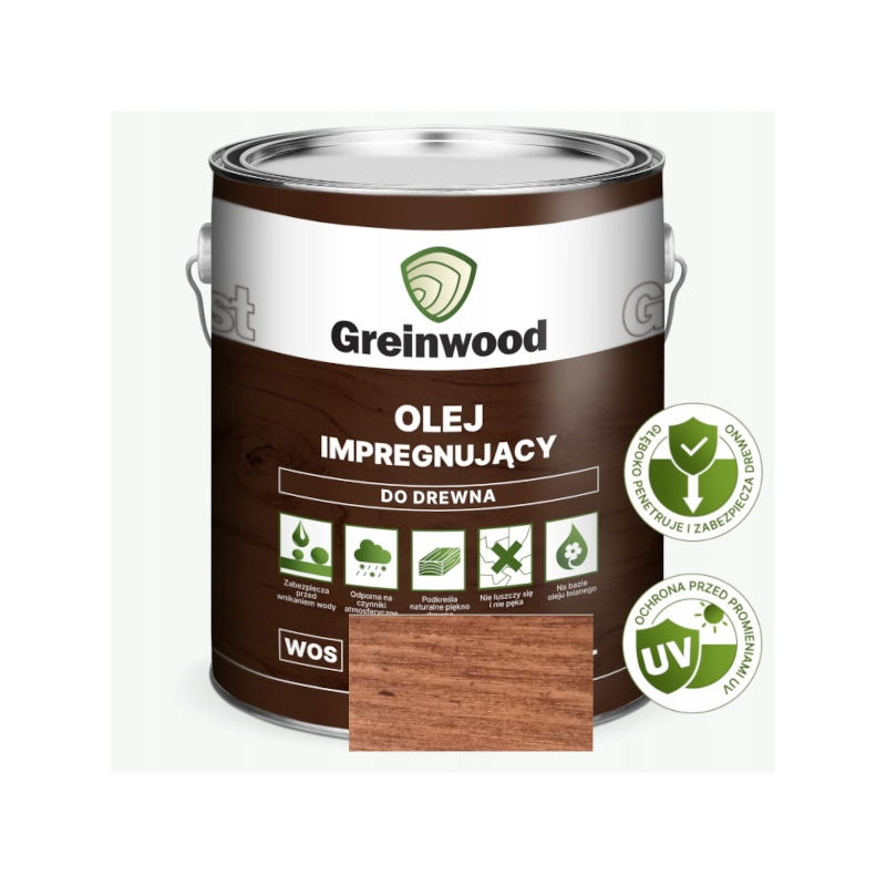 Produkt służy do wykonywania dekoracyjno-ochronnych warstw pierwotnych lub renowacji elementów architektury ogrodowej (np. płotów, pergoli, altanek, mostków itp.), mebli ogrodowych, drewnianych elementów fasadowych, a przede wszystkim deski tarasowej. Doskonale wnika w głąb drewna, dzięki czemu drewno swobodnie oddycha, a powstała powłoka nie łuszczy się. Podkreśla naturalną strukturę drewna, reguluje jego wilgotność oraz pozwala uzyskać gładką, jedwabistą i miłą w dotyku powierzchnię. Jest niezwykle łatwy w aplikacji, głęboko impregnuje i koloryzuje drewno. Produkt dostępny jest w 16 kolorach wg palety barw Greinplast. W połączeniu z BIOAKTYWNYM IMPREGNATEM GRUNTUJĄCYM DO DREWNA – GREINPLAST WB zapewnia doskonałą ochronę drewna.