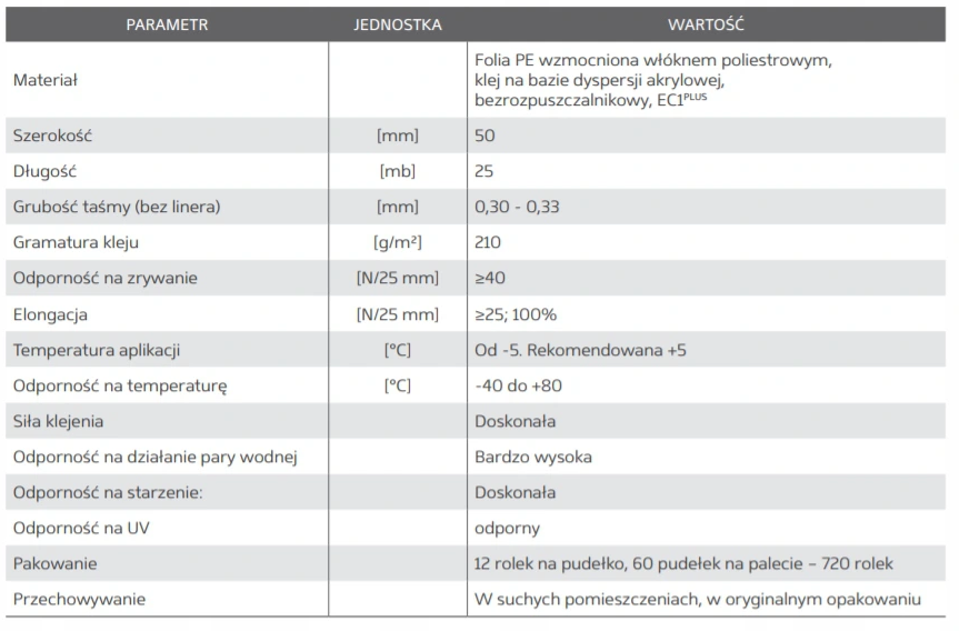 Taśma jednostronna Eurovent® UNO do sklejania i reperacji folii paroizolacyjnych i dachowych, membran dachowych oraz innych produktów budowlanych na bazie tworzyw sztucznych. Zbudowana z folii polietylenowej wzmocnionej włóknem poliestrowym i pokryta specjalnym klejem na bazie dyspersji akrylowej. Zabezpieczona oddzielającym papierem silikonowym.