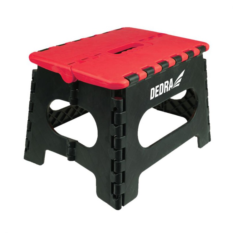 DEDRA Stołek składany obciążenie 130kg - Stołek składany wykonany z tworzywa sztucznego. Nieduży gabaryt w połączeniu z dużym udźwigiem wynoszącym 130 kg sprawia iż stołek może znaleźć zastosowanie w wielu sytuacjach. W razie transportu stołek można złożyć zmniejszając jego rozmiar.